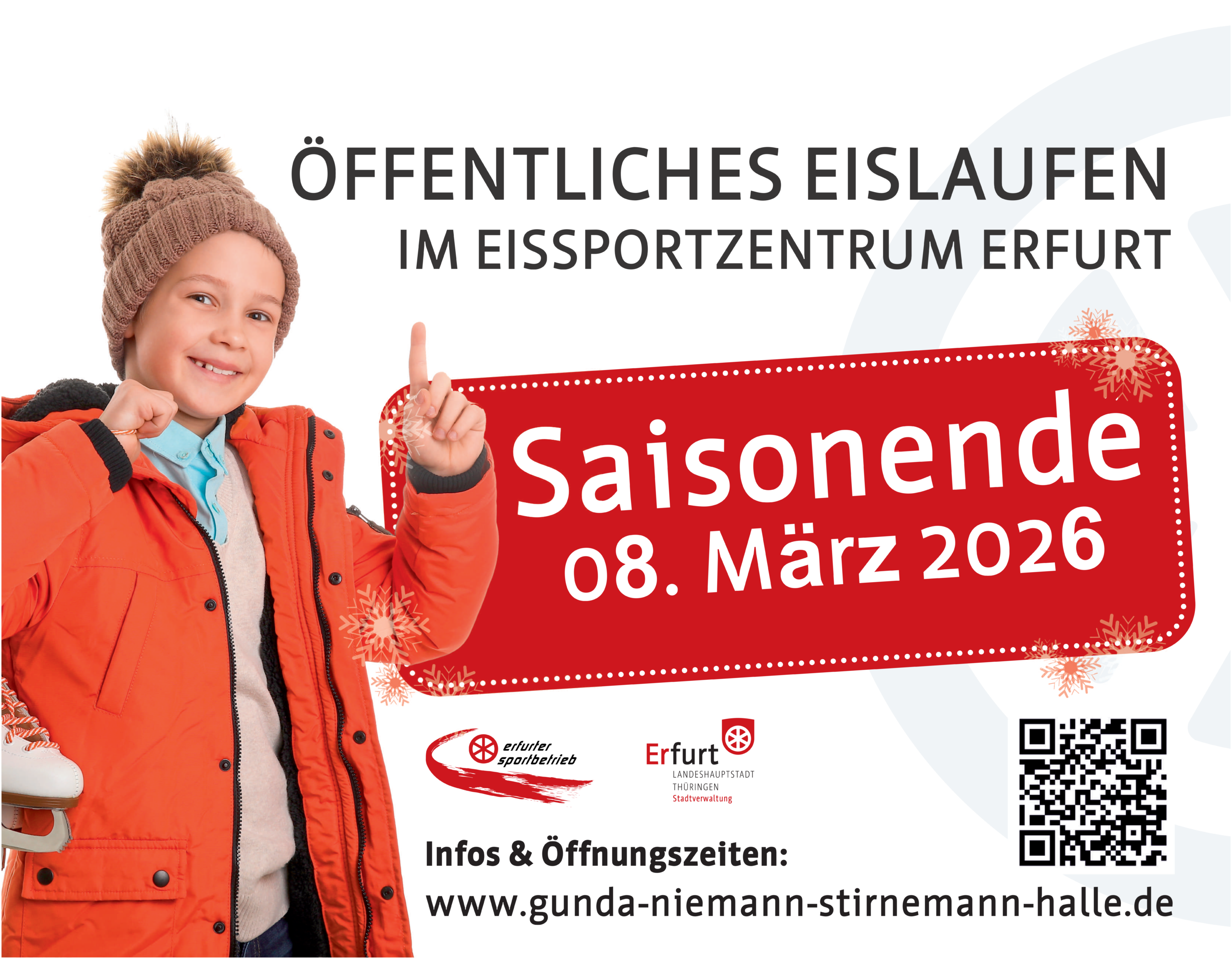 Am 08.03.2026 können Sie von 16:00 bis 20:00 Uhr ein letztes Mal in dieser Saison über das Eis gleiten. Danach verabschieden sich unsere Eislauf-Pinguine in die wohlverdiente Sommerpause.